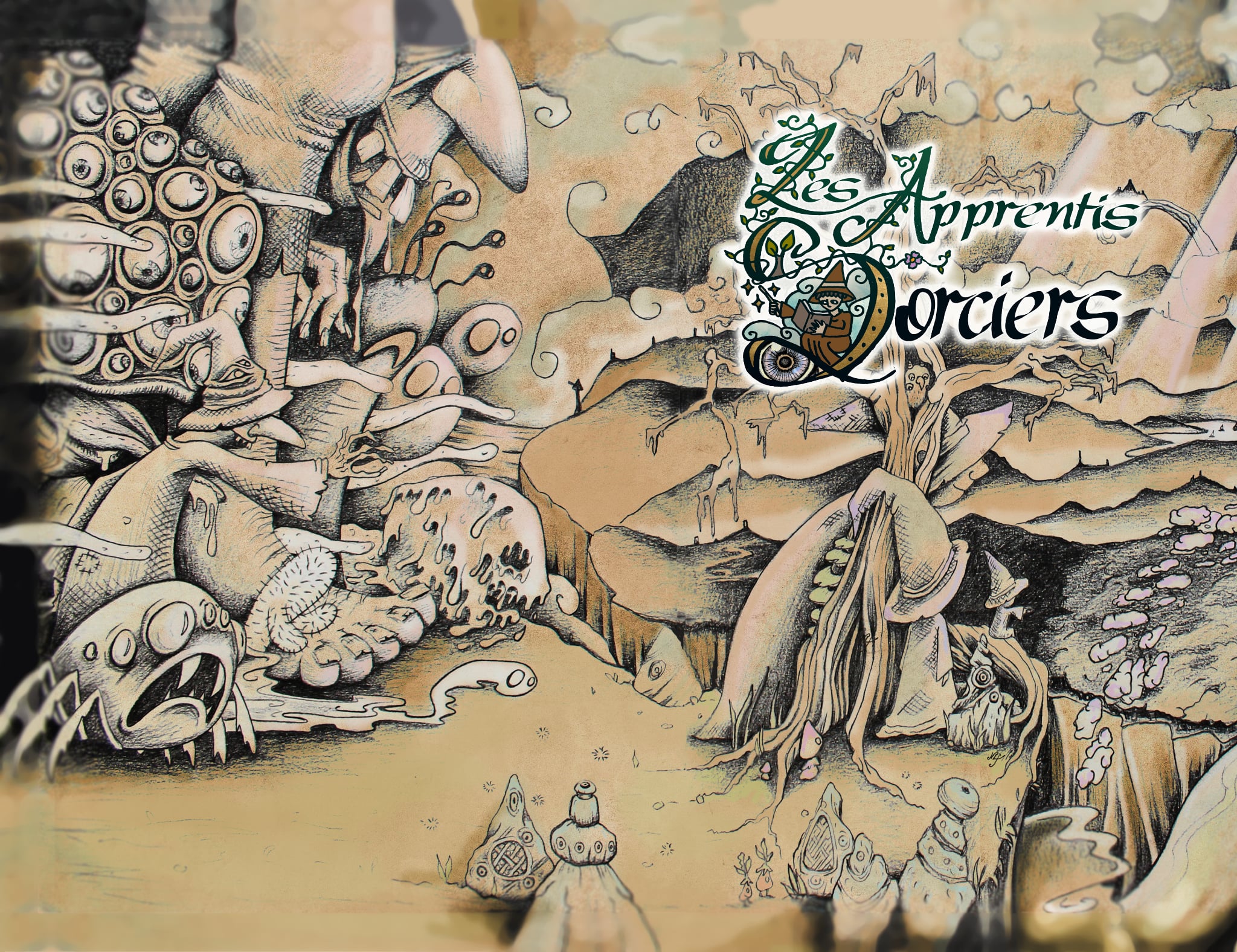 • Les Apprentis Sorciers, Pierre Petitfrère et Nicolas Oudin, Posidonia JDR - illustration de couverture, illustrations intérieures, illustration de paravent du MJ.